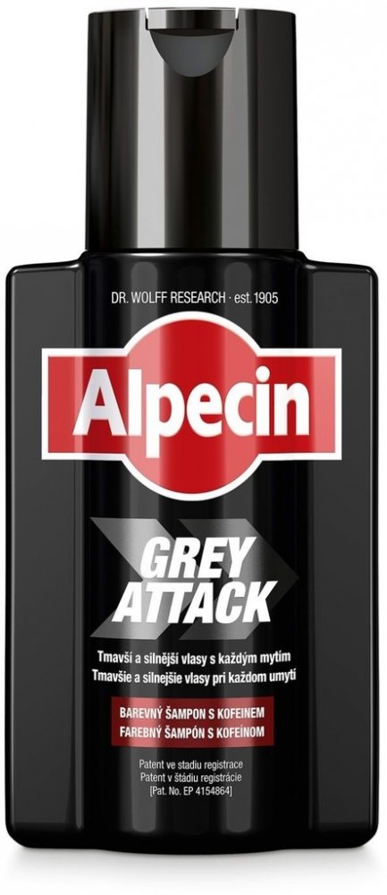 Ingredients: Aqua, Sodium Laureth Sulfate, Sodium Cocoamphoacetate, Cocamidopropyl Betaine, Panthenol, Caffeine, Sodium Chloride, Coco-Glucoside, Glyceryl Oleate, Phosphoric Acid, PEG-120 Methyl Glucose Dioleate, Menthol. 2, Polyquaternium-7, Dihydroxyindole, Citric Acid, Niacinamide, Zinc PCA, Sodium Sulfate, Phenoxyethanol, Sodium Benzoate, Parfém, Tetramethyl Acetyloctahydronaphthalenes, Linalyl Acetate, Limonene, Citrus Aurantium Peel. ALPECIN Grey Attack – tmavší a silnější vlasy s každým umytím. Revoluční šampon s repigmentační technologií a kofeinem účinně bojuje proti šedivění a vypadávání vlasů.