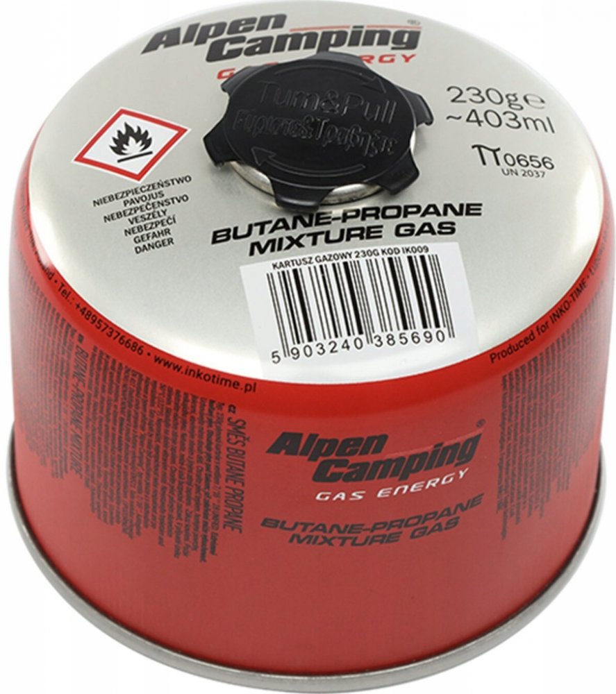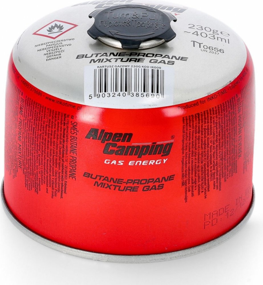 30g plynová kartuše s 7/16 závitem, určená pro připojení k plynovým spotřebičům, hořákům a vařičům. Kartuše splňuje normu EN417 a obsahuje směs propan-butan s obsahem více než 99 %. Hrubá hmotnost této kartuše činí 230 g, zahrnuje hmotnost plynu i samotné kartuše. Připojení k plynovým spotřebičům probíhá prostřednictvím závitu 7/16 a kartuši lze snadno odmontovat. Může být skladována v teplotním rozmezí od -10°C do +40°C. Tato kartuše je vhodná pro různé outdoorové aktivity a je jedním z kvalitních výrobků od společnosti Alpen Camping.