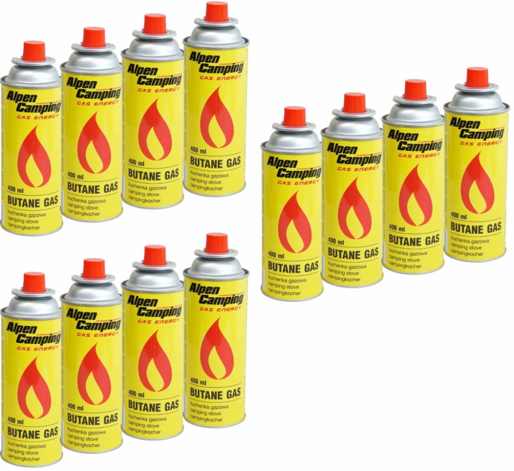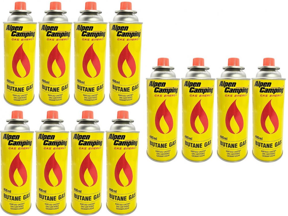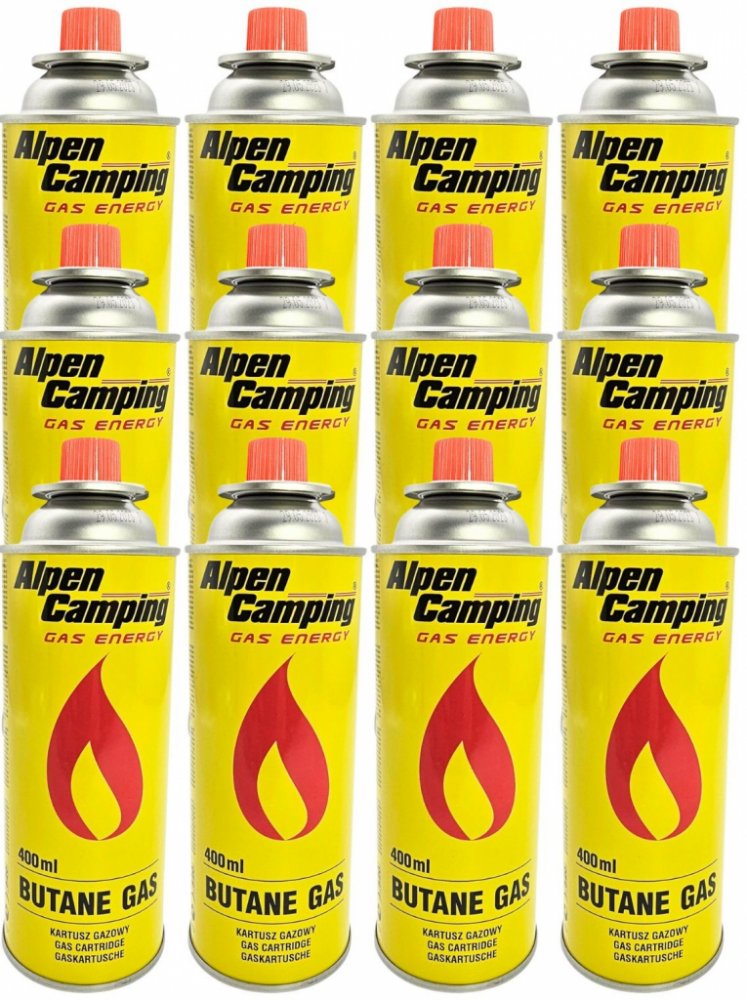 Alpen Camping kartuše 400 ml pro použití se spotřebičem na butan v souladu s EN 521. Tato nádoba vyhovuje EN 417. Zásobník je naplněn účinným, vysoce kalorickým butanovým plynem. Vystačí na 150 - 200 min. Díky kompaktním rozměrům je vhodný pro mnoho typů kempingových vařičů, plynových hořáků atd. Kartuše je lehká, praktická a snadno se používá.