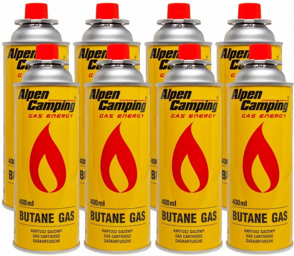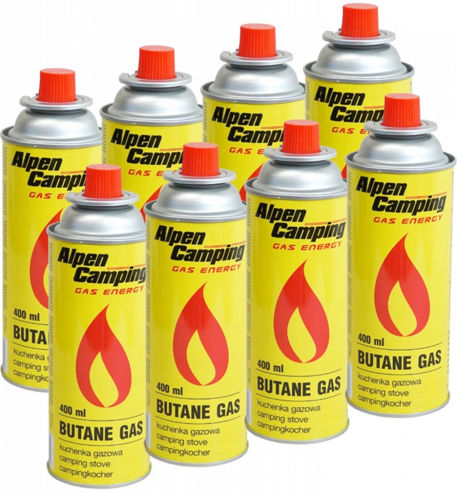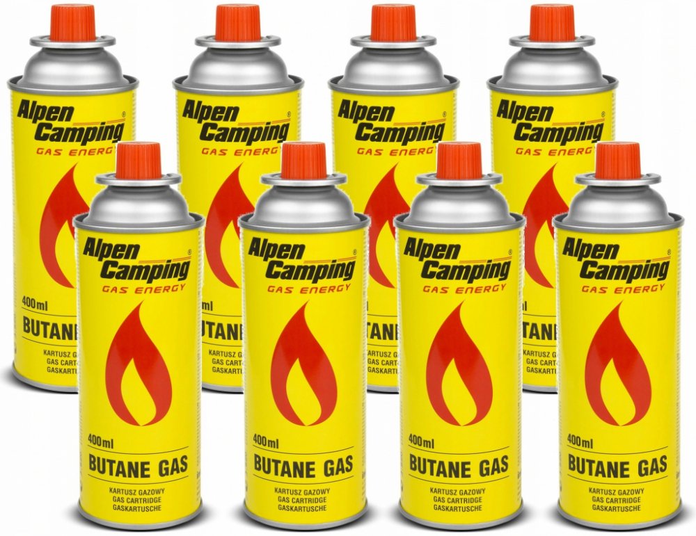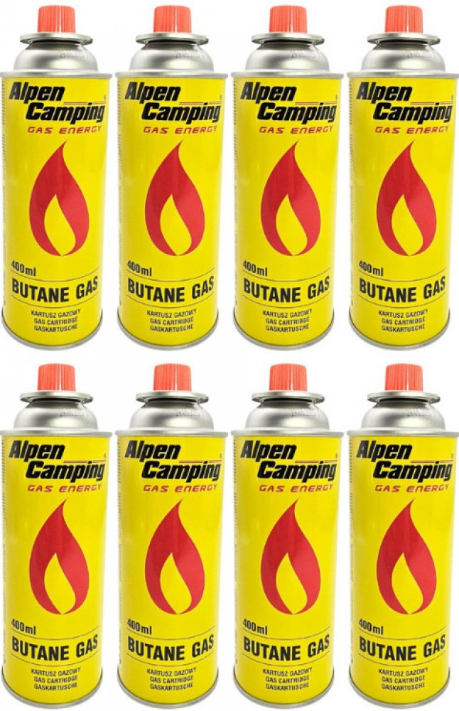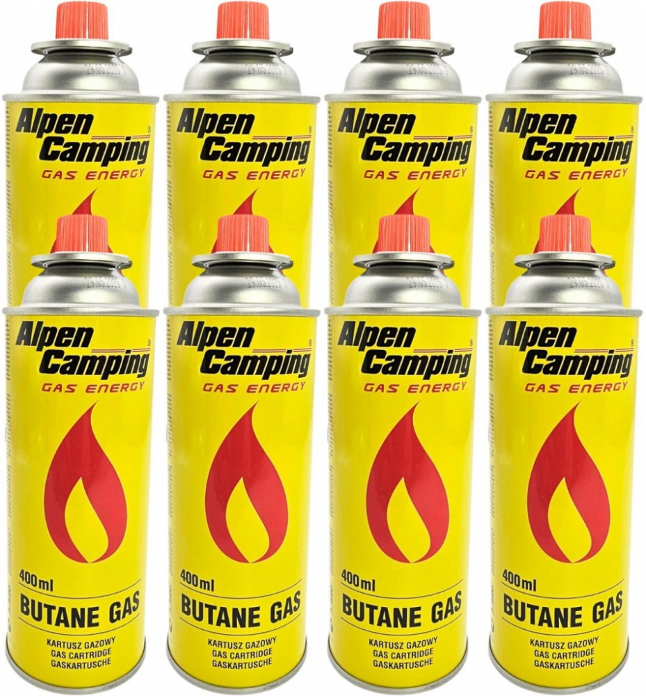 Alpen Camping kartuše 400 ml pro použití se spotřebičem na butan v souladu s EN 521. Tato nádoba vyhovuje EN 417. Zásobník je naplněn účinným, vysoce kalorickým butanovým plynem. Vystačí na 150 - 200 min. Díky kompaktním rozměrům je vhodný pro mnoho typů kempingových vařičů, plynových hořáků atd. Kartuše je lehká, praktická a snadno se používá.