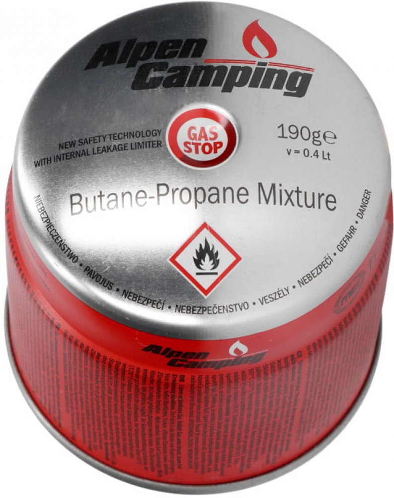 Shrnutí: Propan-butanová kartuše Alpen Camping o hmotnosti 190 g s ventilem „stop gas“ je spolehlivým, bezpečným a praktickým zdrojem paliva pro turistické plynové vařiče a hořáky. Její kompaktní velikost a pokročilé funkce ji činí nezbytnou součástí výbavy pro všechny milovníky outdoorových aktivit.