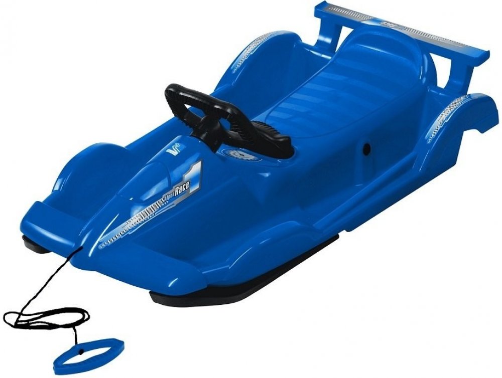 Boby ve tvaru závodního auta pro malé "závodníky" na sněhu. Stále vyvíjené a oceňované boby s vynikající stabilitou a ovládáním. Masivní ocelová tyč řízení. Tvarování a konstrukce lyžin zajišťuje stabilitu ve všech zatáčkách. Robustní ruční brzda s kovovými drápy. Včetně lana na táhnutí s rukojetí a ozdobnými potisky. Boby jsou vyrobeny z vysoce kvalitního HDPE plastu, který zůstává pružný a pevný i při nízkých teplotách.