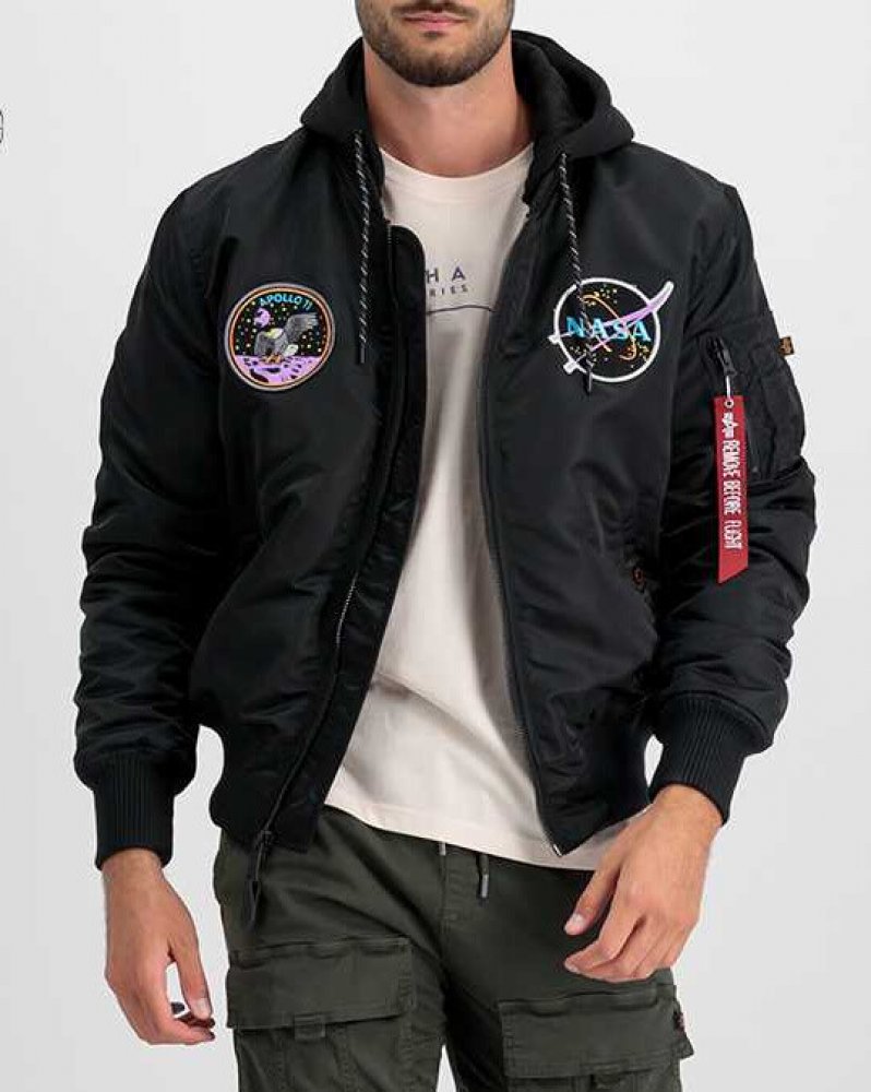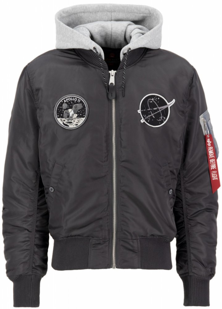 Klasická bunda MA1 bomber v provedení VF (vintage fit - zúžené provedení) s motivem odvrácené strany Měsíce - DARK SIDE s kapucí. - bunda v leteckém stylu do chladnějšího počasí - střih originám bomber Alpha Industries VF - pevná látková kapuce Materiál: vnější látka: 100% nylon vnitřní látka: 100% nylon vnitřní výplň: 100% polyester kapuce: 80% bavlna, 20% polyester