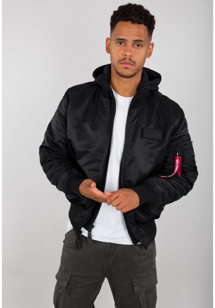 Bunda MA-1 v moderním provedení s látkovou kapucí, která má na zadní straně logo Alpha Industries a nápis nápis Alpha Indsutries na zadní straně umístěný vertikálně. - odnímatelná kapuce - kontrastní potisk zadní straně bundy - kapsa utility na levém rukávu včetně visačky RBF Regular Fit Materiál: vnější látka: 100% nylon vnitřní látka: 100% nylon vnitřní výplň: 100% polyester kapuce: 75% bavlna, ...