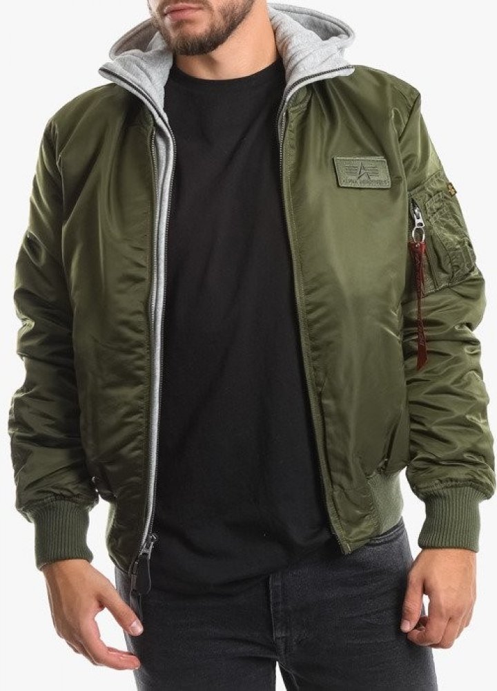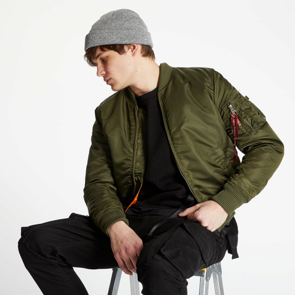 Bomber z kolekce Alpha Industries. Lehký zateplený model, vyroben z hladké tkaniny. Rukávy a spodní část jsou vykončené stahováním chránícím před nepříznivými povětrnostními podmínkami.
