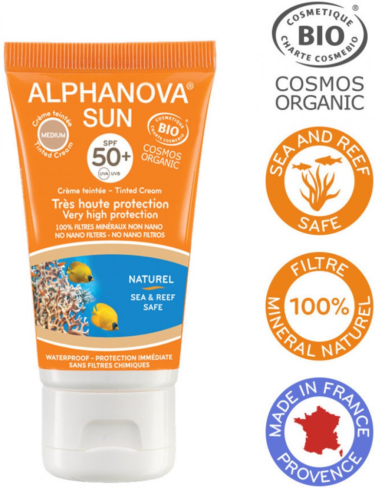 Přírodní opalovací krém ALPHANOVA SUN je certifikovaný společností ECOCERT jako BIO COSMOS a působí pomocí minerálních filtrů bez obsažených nano částic.