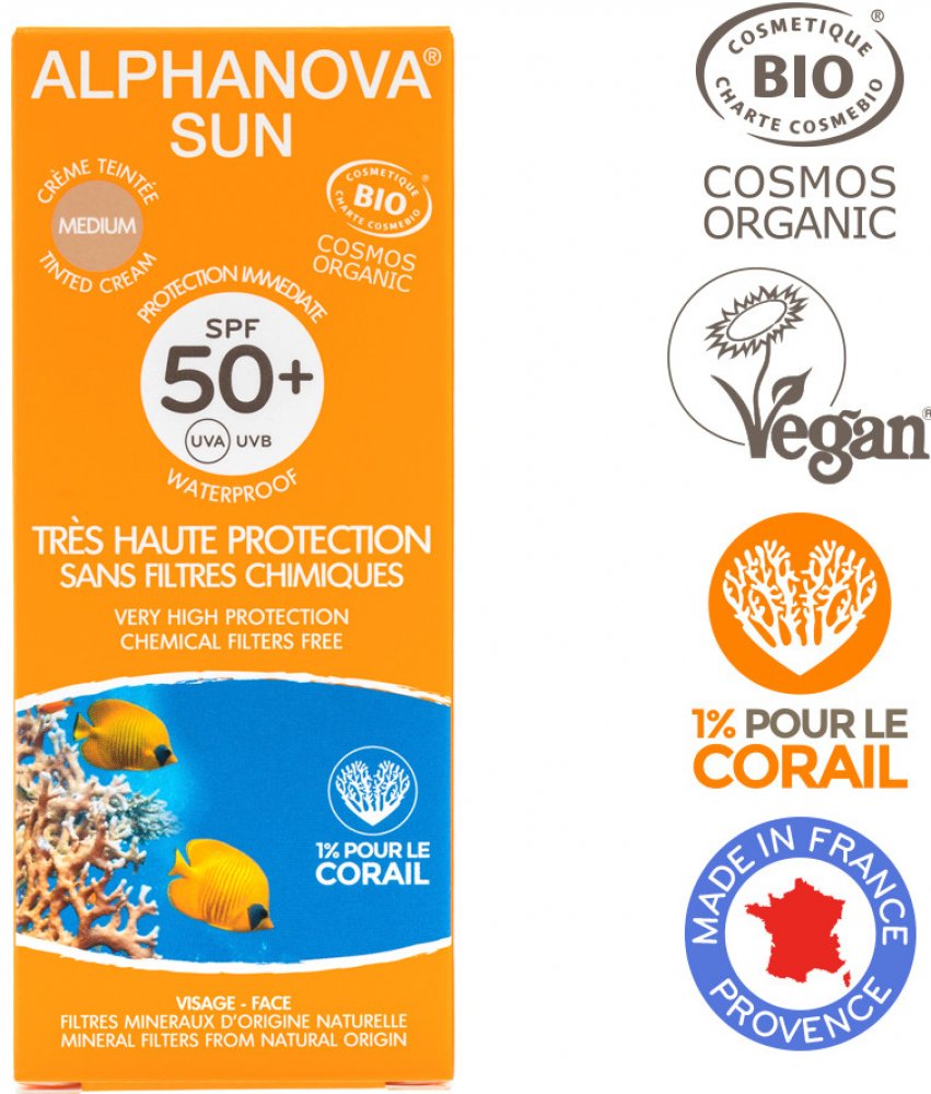 Ochrana proti slunečnímu záření SPF 50+ certifikovaná Ecocert.