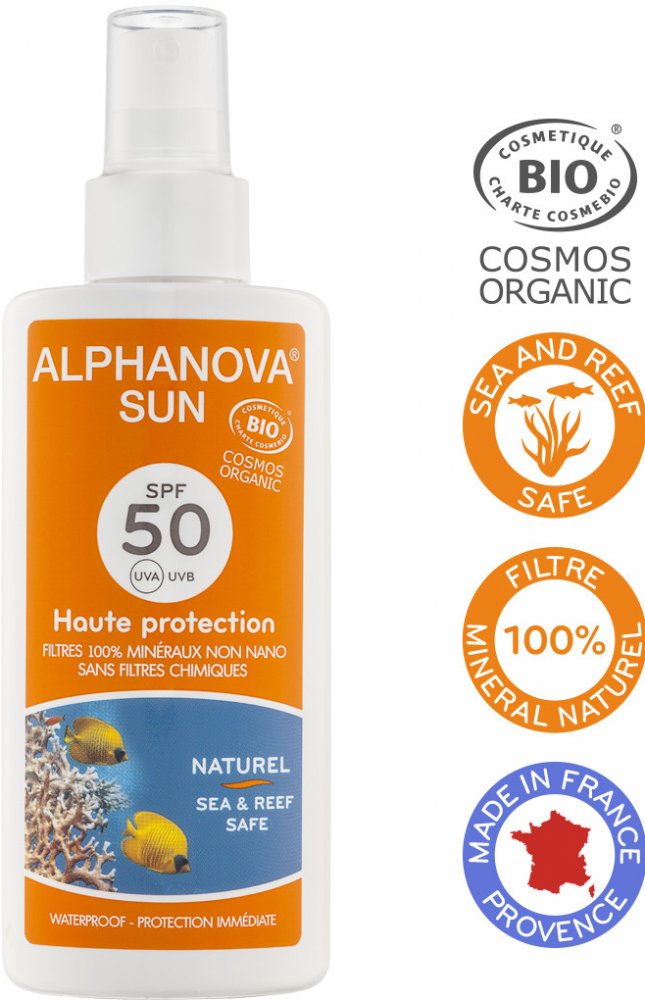 Obsahuje 100% přírodní minerální filtry pro okamžitou ochranu před UVA i UVB slunečním zářením. Minerální filtry působí na pokožce jako fyzická bariéra, vytvoří slabou vrstvu, která odráží UV záření. Na rozdíl od chemických filtrů tak nehrozí podráždění kůže a tělo není vystaveno ani škodlivému vlivu nano částic, které komerční krémy mohou obsahovat. Značka Alphanova si zakládá také na šetrném přístupu k životnímu prostředí, jejich výrobky nejsou díky ekologickému složení zátěží pro vodní živočichy,