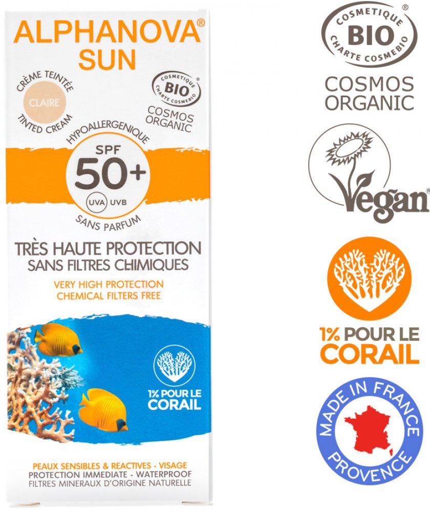 S rostlinnými oleji z jojoby a tamanu a aloe vera. Obsahuje pouze minerální filtry.