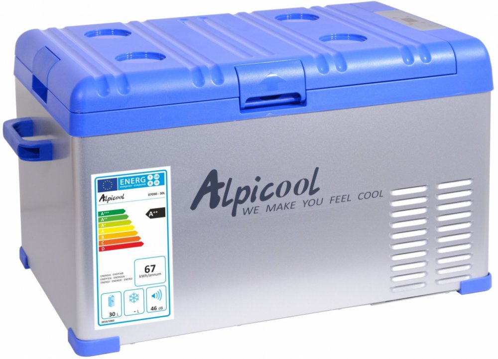 Chladící box kompresor 30l 230/24/12V -20°C BLUE ALPICOOL Chladicí box může být napájen z 12 V nebo 24 V zástrčky automobilů či lodí, nebo z běžné zásuvky 230 V. Je vybaven výkonným kompresorem s chladicím médiem a lze jej použít jak jako chladničku s teplotou 0 – 10°C, tak i jako mrazicí box s teplotou až -20°C. Chladicí box nabízí i režim ECO pro úsporu elektrické energie a Hi mode pro rychlé ochlazení obsahu až k -20°C (při okolní teplotě 25°C). Dále je vybaven inteligentním systémem ochrany před vybitím připojeného akumulátoru a je osazen displejem s tlačítky pro pohodlné ovládání. Dvířka chladicího boxu jsou variabilní, umožňují jak podélné otvírání, tak i snadnou úpravu na příčné otevírání. Díky postranním madlům z odolného plastu je tento box snadno přenosný. Vnější plášť je proveden z kvalitně lakovaného hliníku stříbrné barvy, který spolu s perfektní PU izolací zajišťuje dlouhodobé zachování stabilní teploty uvnitř boxu a zaručuje velmi nízkou spotřebu energie. Parametry: vnitřní objem: 30 l napájení: 12 / 24 V // 230 V příkon: maximálně 45 W (3,75 A / 1,87 A) klimatická třída: T/ST/N/SN kategorie: 1 roční spotřeba: 67 kWh rozsah chlazení: +20°C až -20°C okolní teplota: +10°C až +43°C hlučnost: 46 dB chladící médium: R600a vnější rozměry: 57,5 x 36,5 x 36 cm hmotnost: 12.9 kg