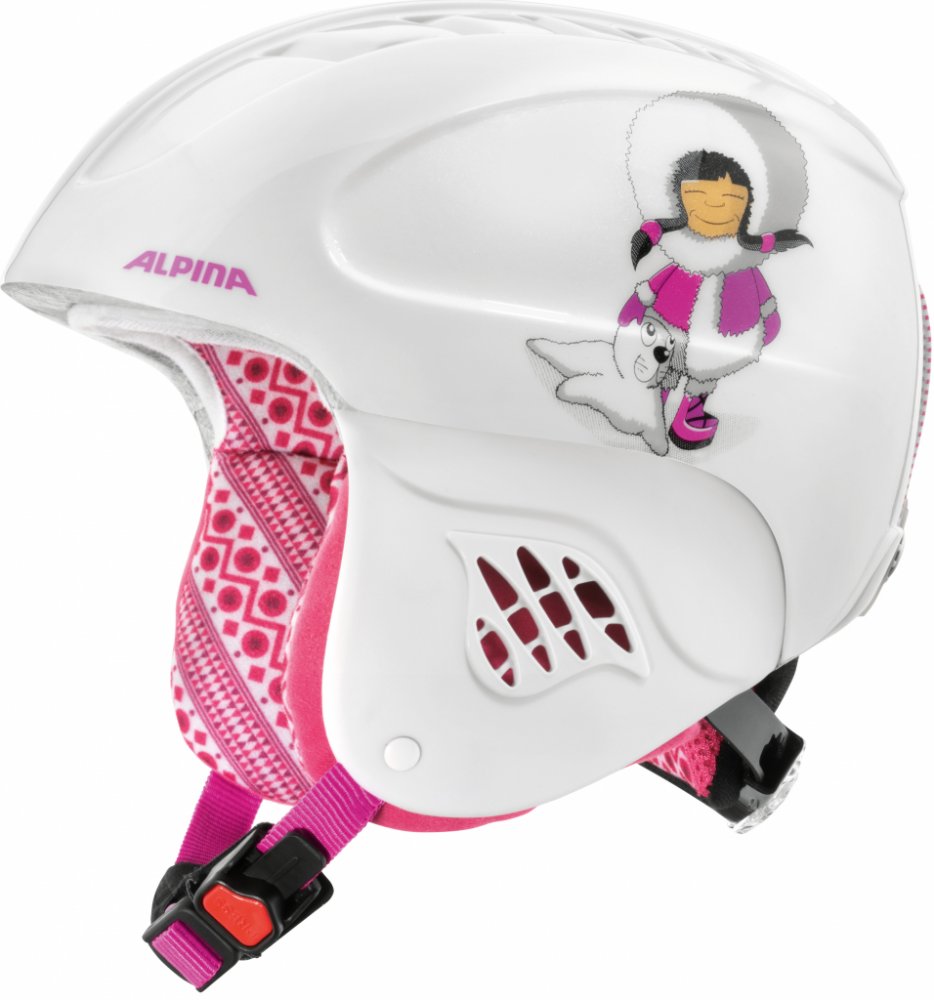 Dětská osvědčená lyžařská helma Alpina Carat se vyznačuje moderním designem a velkou bezpečností. Je vybavena technologiemi Run System a Inmold Tec. Krytky uší jsou z pevného materiálu a vnitřek helmy je vyměnitelný. Výborná ventilace díky technologii Venting System, technologie NECKWARMER pro ještě větší komfort.Dodávána ve velikostech 48-52; 51-55 a 54-58IN-MOLD technologie: Tato technologie umožňuje kompaktního propojení vnějšího povrchu helmy a vnitřní měkké části díky souboru kompresních procedur, kterými každá helma při výrobě prochází. Výsledný produkt je velice odolný, zároveň lehký a pohodlný na nošení. Hlavní předností je pak zvýšená schopnost vydržet náraz (a to i při kontaktu s ostrými a špičatými předměty) v porovnání s helmami vyráběnými klasickou metodou.HARDSHELL: Kombinace velice pevné a nárazu odolné skořepiny (materiál ABS či polykarbonát) s měkkou vnitřní částí (materiál EPS) zaručují maximální bezpečnost. Modely určené na závodní ježdění jsou vybaveny úchyty pro dodatečný kryt brady.RUNSYSTEM: Standardizovaný systém upravující helmu pro osobní potřeby každého uživatele. Za pomocí otočného šroubu je tak možné upravit tvarování týlní části helmy. RUN System se lehce tvaruje tak, aby zachoval maximální přilnavost a pohodlíERGOMATIC: Všechny helmy značky Alpina jsou bez výjimky vybaveny nově vyvinutým úchytným systémem Ergomatic. Tento je možné snadno ovládat jednou rukou díky uzpůsobenému ergonomickému tvarování. Zároveň je tento systém extrémně odolný, čímž se minimalizuje riziko poškození při pádu či nárazu.Vyměnitelný vnitřek: Je pochopitelné, že se člověk při jízdě zpotí. To je důvod, proč Alpina vyvinula vnitřní měkkou část helmy tak, aby bylo snadné tuto kdykoliv vyjmout. Pak už ji jen stačí omýt teplou mýdlovou vodou, vysušit a opět do helmy vsadit.Standard CE EN 1077: Maximální intenzita zátěžových testů je dnes garantována institucí CE, v jejímž rámci jsou prováděny (mimo jiné) testy zjišťující schopnost odolat nárazu, odolnost vůči proražení, pevnost jistících prvků, pole viditelnosti a další. Všechny helmy značky Alpina odpovídají svojí kvalitou nejaktuálnějším požadavkům normy CE EN 1077.