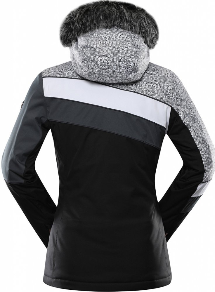 Moderní, sportovně-elegantní dámská zimní bunda DORA 7 se v zimní kolekci ALPINE PRO objevuje již pravidelně a vzhledem k bezchybnému zpracování, univerzálnosti a vysoké funkčnosti si našla plno svých obdivovatelek. Tato TOP bunda je vyrobena z nepromokavého, velmi prodyšného, větruodolného a příjemně pružného materiálu s membránou PTX SNOW a speciální úpravou DWR. Díky těmto funkčním materiálům a úpravám bunda dosahuje hodnoty vodního sloupce 10 000 mm a paropropustnosti 10 000g/m2/24h. Luxusní bunda v přiléhavém střihu DORA 7 nadchne nejen nádherným designem s odepínatelnou umělou kožešinkou na kapuci. Lyžařská bunda nabízí velmi hřejivou výplň, podlepené švy, hřejivou krytku brady a vnitřní límec z velice příjemného materiálu, anatomicky tvarované rukávy, ve spodní části stahovatelné manžetou na suchý zip a s vnitřní elastickou manžetou na palec, praktické odvětrávání v podpaží se zipy, sněhový pás s elastickou vsadkou pro maximální rozsah pohybu, který lze jednoduše odepnout, a možnost přichycení kalhot k bundě pomocí poutek. Nechybí ani regulovatelná spodní část na gumičku, 6 praktických kapes se zipy společně s kapsou na skipas a lyžařské brýle. Jako téměř u všech našich funkčních výrobků nesmí chybět delší taháčky na zipech pro snadnou manipulaci a reflexní potisk pro vaši lepší viditelnost za zhoršených světelných podmínek. Tato bunda nesmí chybět ve vašem zimním šatníku! V nabídce naleznete i speciální větší velikosti.