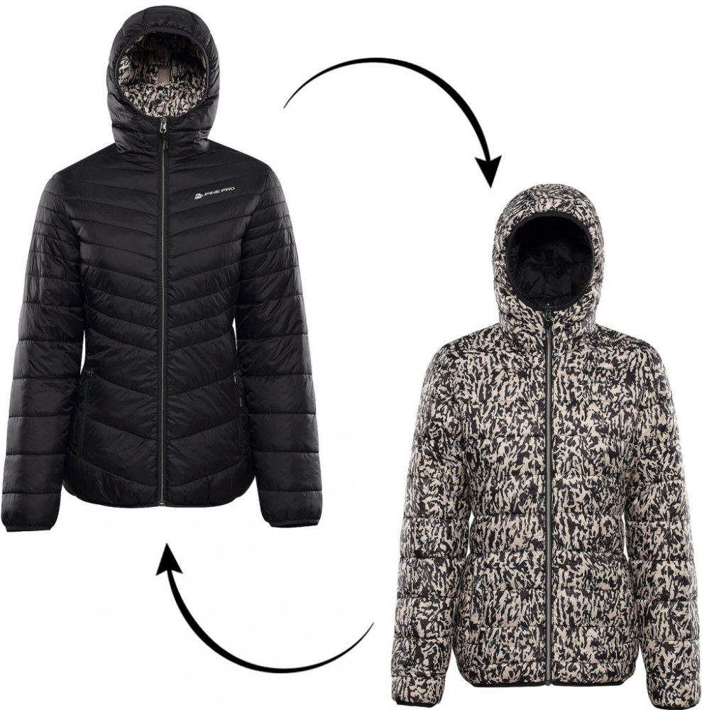 Dámská zimní bunda EROMA je vyrobena z vodoodpudivého, větruodolného, ultralehkého a krásně celopotištěného materiálu se zátěrem a funkční úpravou Teflon EcoElite™. Tato úprava navíc neobsahuje fluorocarbony, a je tak příznivá k životnímu prostředí. Má silnou hřejivou výplň, kontrastní prošívanou podšívku, kapuci, rukávy a spodní část lemované gumou, krytku brady, 4 praktické kapsy se zipy a delší taháčky pro snadnou manipulaci. Bunda je plnohodnotně oboustranná. Složení materiálu: 100% nylon.