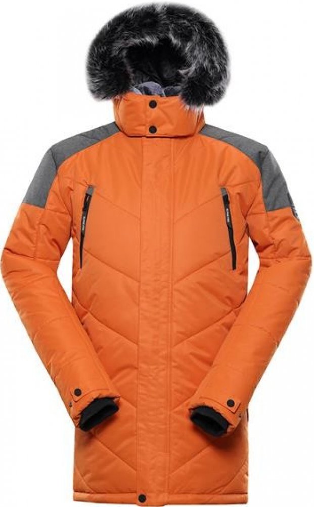Pánská zimní bunda Alpine Pro s membránou PTX a vodním sloupcem 3000 mm Velmi komfortní prodloužená pánská zimní bunda Alpine Pro Icyb 7 navazuje na předchozí řady jednoho z nejoblíbenějších modelů univerzálních a sportovně laděných zimních bund. Model Icyb 7 je proveden v komfortním polopřiléhavém střihu Regular Fit. Bunda je příkladně zpracována včetně vnějšího zkoseného prošívání, které zajišťuje rovnoměrné rozložení silné a přitom velmi lehké hřejivé výplně High Therm, kterou tvoří dutá vlákna se schopností pojmutí velkého množství vzduchu. Další nespornou výhodou výplně High Therm je fakt, že má nízkou inklinaci k navlhavost a na rozdíl od tradičního řešení pomocí peří je také zcela nealergenní. Model pánské bundy velmi dobře ochrání před průnikem chladu a také průsakem vody. V oblasti trapéz je osazen pevným odolným úpletem. Zbytek bundy tvoří textilie ošetřená impregnační vrstvou Durable Water Repellency. Kombinace jednotlivých vrstev obsahuje membránové řešení PTX. Výsledkem je ochrana ve výši vodního sloupce 3 000 mm v kombinaci se stejně nastavenou paropropustností 3000 g/m2/24 h.Atraktivně vyhlížející bunda disponuje kapucí s příjemným odepínatelným umělým kožíškem. Rukávy jsou zakončeny vnitřními flexibilními manžetami v nápletu s možností regulace vnějšího sepnutí zakončení rukávů pomocí patentků. K dispozici je celkem 5 kapes včetně dvou praktických hrudních. Bunda je osazena kvalitními těsně lícujícími zipy s dostatečně dlouhými taháčky pro snadnou manipulaci. Hlavní zip je chráněn textilní légou na patentky. Velmi komfortně je řešeno rovněž vnitřní lemování kolem krku s extra patentkovým zapínáním, čímž je docíleno výborné ochrany krku před ofouknutí. Levý rukáv zdobí stylová nášivka Alpine Pro horské tématiky.Materiál: 100 % polyester
