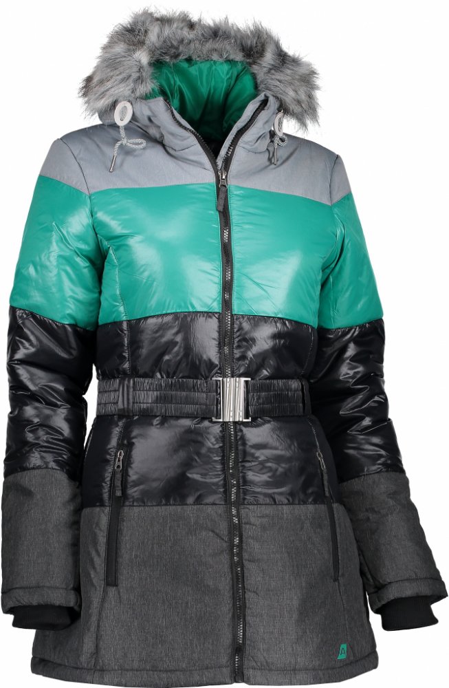Dámská zimní bunda Alpine Pro Marriota s umělou odepínatelnou kožešinou na kapuci je zpracována v moderním designu. Bunda je vyrobena z ultralehkého, voděodpudivého a hřejivého materiálu s impregnační vrstvou DWR. Výrobek obsahuje silnou hřejivou výplň, neodepínatelnou kapuci se stahováním a ochrannou krytku brady. Navíc je ušita v elegantním polopřiléhavém střihu s dekorativním prošitím. U této elegantní bundy nesmí chybět pásek v pase, praktické úplety na rukávech a praktické kapsy s delšími taháčky.Hlavní přednosti dámské zimní bundy Alpine Pro Marriota:: moderní design, odepínací kožešina, hřejivá výplň, kapuce napevno, ochranná krytka brady, dekorativní prošití, pásek v pase, úplety na rukávech, 2 přední kapsy se zipyVyužití:: do zimního počasí, do města, do zaměstnání