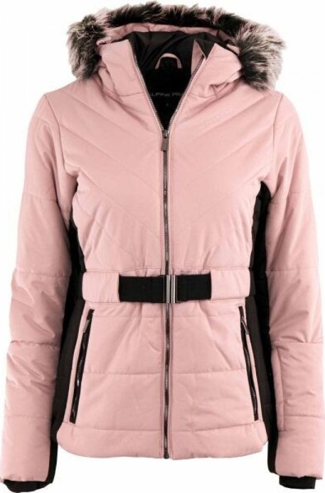 Elegantní dámská bunda Alpine Pro VENGA s páskem v pase a umělou kožešinou na kapuci je vyrobena z vodoodpudivého, nepromokavého, paropropustného, větruodolného a pružného materiálu s vodním sloupcem 10 000 mm a paropropustností 5 000 g/m²/24h. Bunda má hřejivou výplň a kontrastní podšívku s hřejivým materiálem na zadní části, a tak nejen že vám bude při lyžování a snowboardingu slušet, ale ještě vaše tělo dokonale ochrání. Střih je polopřiléhavý s dekorativním prošitím. Kapuce je neodepínatelná, kožešina naopak odepínatelná je. Pas je vybaven poutky na opasek, obsahuje i krásný pásek se sponou. Spodní část bundy je vzadu prodloužená, což je v chladném počasí velmi praktické. Bunda má celkem čtyři kapsy: vnější se zipy, jednu na rukávu se zipem a vnitřní ze síťoviny. Na předním díle je potisk a na zadním díle reflexní nášivka.