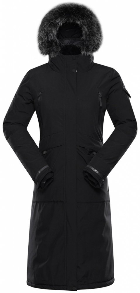 Nepromokavá, prodyšná, větruodolná a pružná tkanina spolu se silnou hřejivou výplní a prošívanou podšívkou udržuje tělo v teple i při nízkých teplotách. Polopřiléhavý střih zdůrazňuje ženskou siluetu a zároveň zajišťuje svobodu pohybu. Neodepínatelná kapuce s odepínatelnou kožešinou dodává kabátu stylový vzhled a spolu s hřejivým vnitřním límcem chrání obličej a krk před chladem.