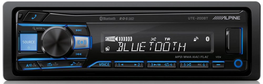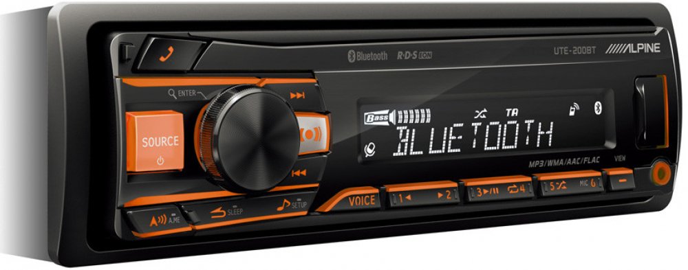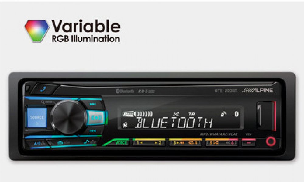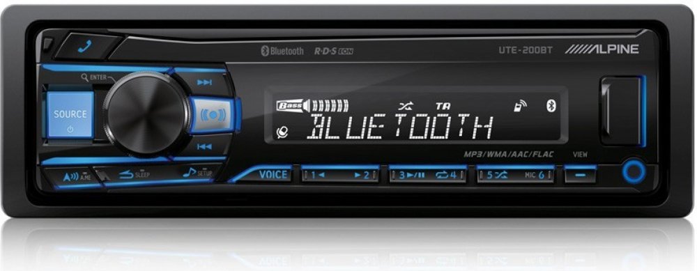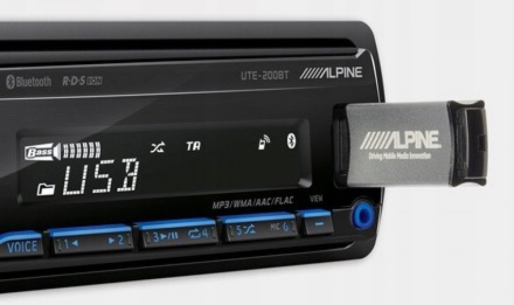 Přehrávač digitálních médií Alpine UTE-200BT Alpine UTE-200BT je cenově dostupné 1DIN autorádio bez CD mechaniky, které nabízí kvalitu značky Alpine a mnoho funkcí. Připojte svůj iPhone nebo iPod, abyste si vychutnali veškerý uložený zvukový obsah, můžete také streamovat Spotify nebo internetová rádia přes Bluetooth, nebo poslouchejte svou oblíbenou hudbu přes USB flash disk. Přiložený mikrofon umožňuje čisté a ničím nerušené telefonické konverzace s vestavěnou funkcí Bluetooth handsfree. Barvu osvětlení displeje i tlačítek můžete nastavit v plném spektru RGB, aby odpovídala vašim preferencím a řídicímu panelu vozidla. Bezdrátové dálkové ovládání je k dispozici jako příslušenství.