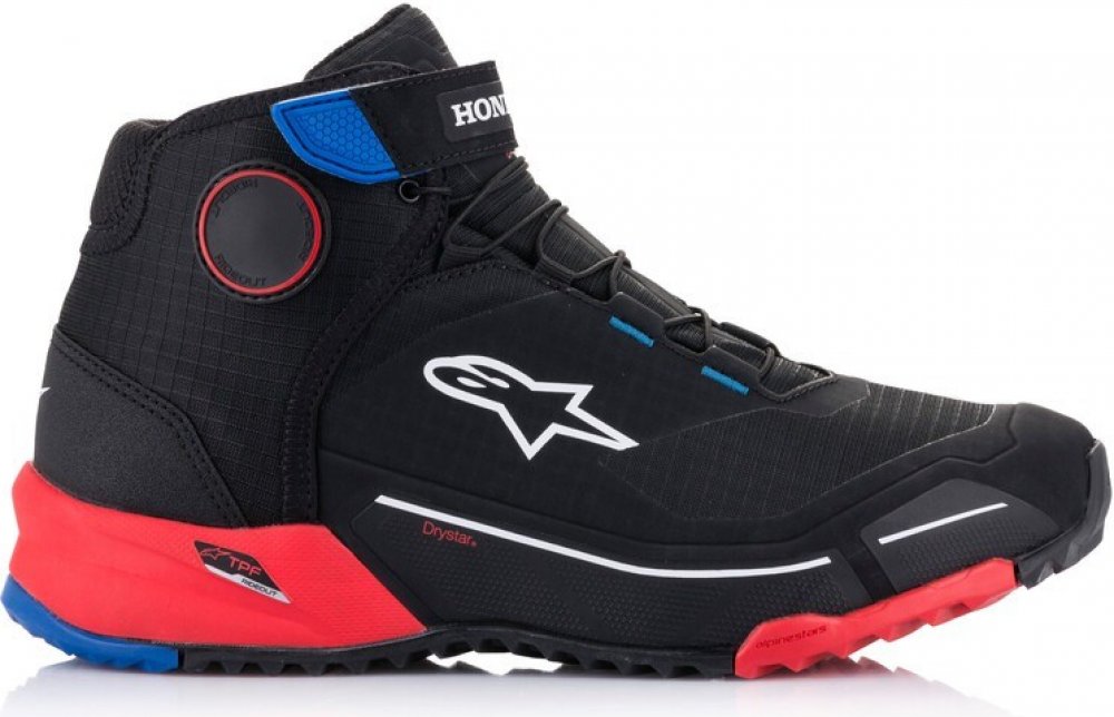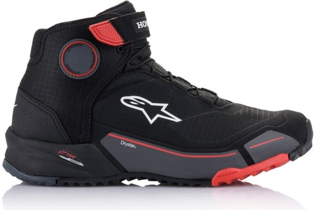 CR-X DRYSTAR® jsou motocyklové boty pro vyjížďkové účely s možností použití i mimo jízdu na motocyklu a zajištění celodenního komfortu během chůze. Boty CR-X spojují některé vlastnosti běžeckých/vycházkových bot a poskytují tak přiléhavý střih konstrukce interiéru boty, kloubený s aspektem dostatečného vnitřního objemu pro zajištění komfortu při celodenním používání i mimo jízdu na motocyklu. Klimatická membrána DRYSTAR® zajišťuje vodotěsnost a prodyšnost během různorodého počasí. Provedení ve spolupráci se značkou HONDA.