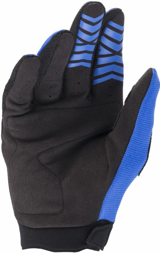 - Ergonomicky střižená dlaň z jedné vrstvy pevné a odolné syntetické kůže s prošívanými panely a perforacemi na prstech pro optimální komfort, grip a prodyšnost i při delším ježdění.