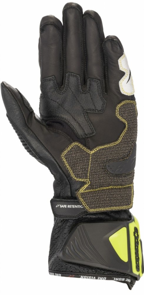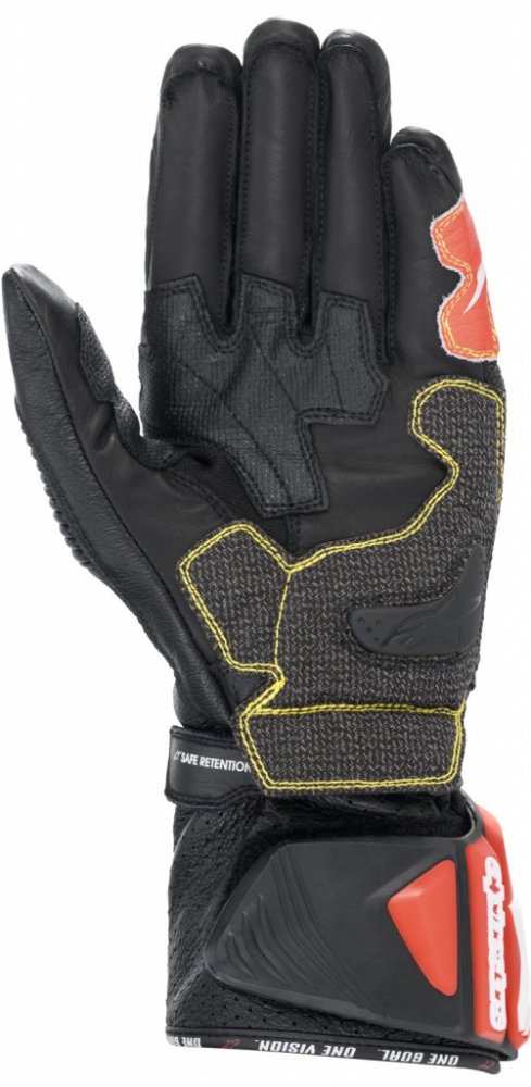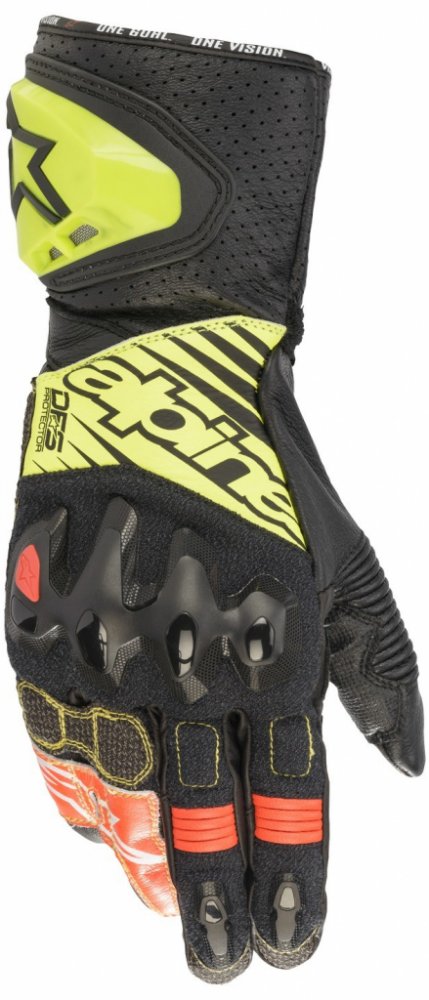 Rukavice GP TECH druhé generace jsou ultimátní racingové rukavice s inovativní bezešvou konstrukcí hřbetu ruky. Strečový materiál obšívky obsahuje vlákna KEVLAR® a zajišťuje zvýšenou volnost pohybu i cit v ruce při kontaktu s řídítky. Inovativní chránič zápěstí ze vstřikovaného plastu s dvojitou hustotou materiálu zajišťuje ochranu proti nárazu a oděru.