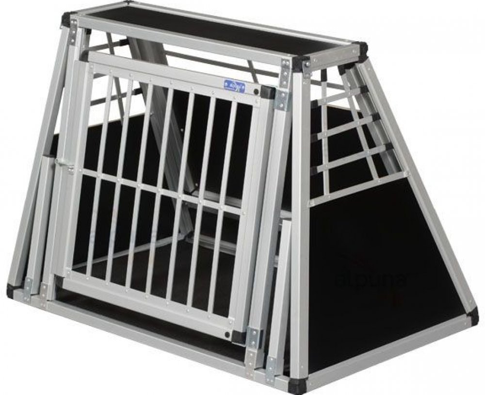 Zjistěte si, zda je klec vhodná pro Vaše auto - navštivte referenční stránky. Hloubka klece 58 cm (v dolní části) Šířka klece 95,5 cm (v dolní části) Výška klece 70 cm Hloubka klece nahoře 21 cm Šířka klece nahoře 76 cm Klec pro psa je vyrobena z hliníkových eloxovaných profilů a je vhodná do řady osobních combi vozů. Zda je klec určena pro váš vůz můžete zjistit změřením kufru Vašeho auta. Důležité je změřit při zavřených zadních dveřích vzdálenost mezi zadními sedadly a zadním oknem. Základní vlastnosti klece pro psy do auta - robustní konstrukce z hliníkových slitin opatřená nýty pro větší stabilitu - potažené MDF desky černé barvy se dobře čistí a udržují - zadní nouzový východ - box lze zamknout visacím zámkem (není součástí dodávky) - hmotnost jen 13,5 kg - velikost dvířek 63 x 64 cm (šířka x výška) - výška spodní hrany dveří 8 cm nad podlahou vozidla - obě boční stěny zešikmené o 8° - úhel vzadu cca 24° a vpředu 9° - včetně odnímatelné podlahové rohože, která je neklouzavá a omyvatelná - klec se dodává v rozmontovaném stavu a její složení Vám zabere asi 40 minut (nářadí je přiloženo) Před objednáním klece doporučujeme změřit si prostor ve Vašem voze.