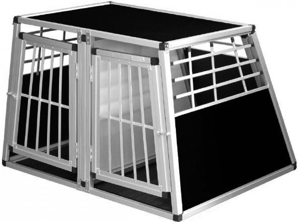 Zjistěte si, zda je klec vhodná pro Vaše auto - navštivte referenční stránky. Hloubka klece 95 cm (v dolní části) Šířka klece 110 cm (v dolní části) Výška klece 75 cm Hloubka klece nahoře 67 cm Šířka klece nahoře 90 cm Klec pro psa je vyrobena z hliníkových eloxovaných profilů a je vhodná do řady osobních combi vozů. Zda je klec určena pro váš vůz můžete zjistit změřením kufru Vašeho auta. Důležité je změřit při zavřených zadních dveřích vzdálenost mezi zadními sedadly a zadním oknem. Tuto klec nabízíme pouze se speciální dopravou po předchozí domluvě. Základní vlastnosti klece pro psy do auta - robustní konstrukce z hliníkových slitin opatřená nýty pro větší stabilitu - potažené MDF desky černé barvy se dobře čistí a udržují - zadní nouzový východ - box lze rozdělit na 2 stejné poloviny pomocídesky z epoxidové pryskyřice s tlustým hliníkovým povlakem snadným vytáhnutím dopředu - box lze zamknout visacím zámkem (není součástí dodávky) - hmotnost jen 26 kg - velikost dvířek 42 x 70 cm (šířka x výška) (2 dveře se zámkem) - výška spodní hrany dveří 8 cm nad podlahou vozidla - obě boční stěny zkosené úhel 19°, dveřní panty uprostřed - úhel vzadu 22° - včetně odnímatelné podlahové rohože, která je neklouzavá a omyvatelná - klec se dodává v rozmontovaném stavu, její složení trvá asi 50 minut Před objednáním klece doporučujeme změřit si prostor ve Vašem voze.