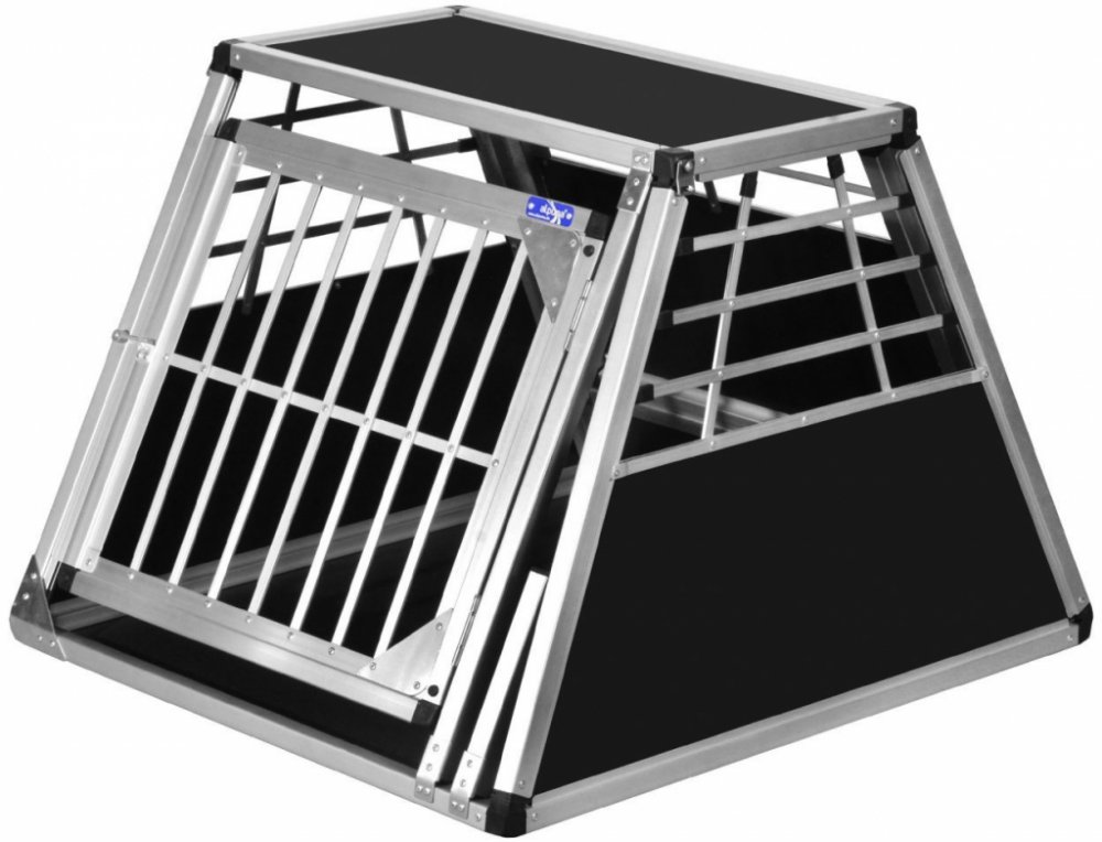 Zjistěte si, zda je klec vhodná pro Vaše auto - navštivte referenční stránky. Hloubka klece 92 cm (v dolní části) Šířka klece 75 cm (v dolní části) Výška klece 63 cm Hloubka klece nahoře 37,3 cm Šířka klece nahoře 68 cm Klec pro psa je vyrobena z hliníkových eloxovaných profilů a je vhodná do řady osobních combi vozů. Zda je klec určena pro váš vůz můžete zjistit změřením kufru Vašeho auta. Důležité je změřit při zavřených zadních dveřích vzdálenost mezi zadními sedadly a zadním oknem. Základní vlastnosti klece pro psy do auta - robustní konstrukce z hliníkových slitin opatřená nýty pro větší stabilitu - potažené MDF desky černé barvy se dobře čistí a udržují - zadní nouzový východ - box lze zamknout visacím zámkem (není součástí dodávky) - hmotnost jen 14 kg - velikost dvířek 58 x 58 cm - výška spodní hrany dveří 8 cm nad podlahou vozidla - levá boční stěna zešikmena - úhel vpředu i vzadu 26° - včetně odnímatelné podlahové rohože, která je neklouzavá a omyvatelná - klec se dodává v rozmontovaném stavu a její složení Vám zabere asi 40 minut (nářadí je přiloženo) Před objednáním klece doporučujeme změřit si prostor ve Vašem voze.