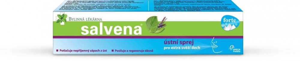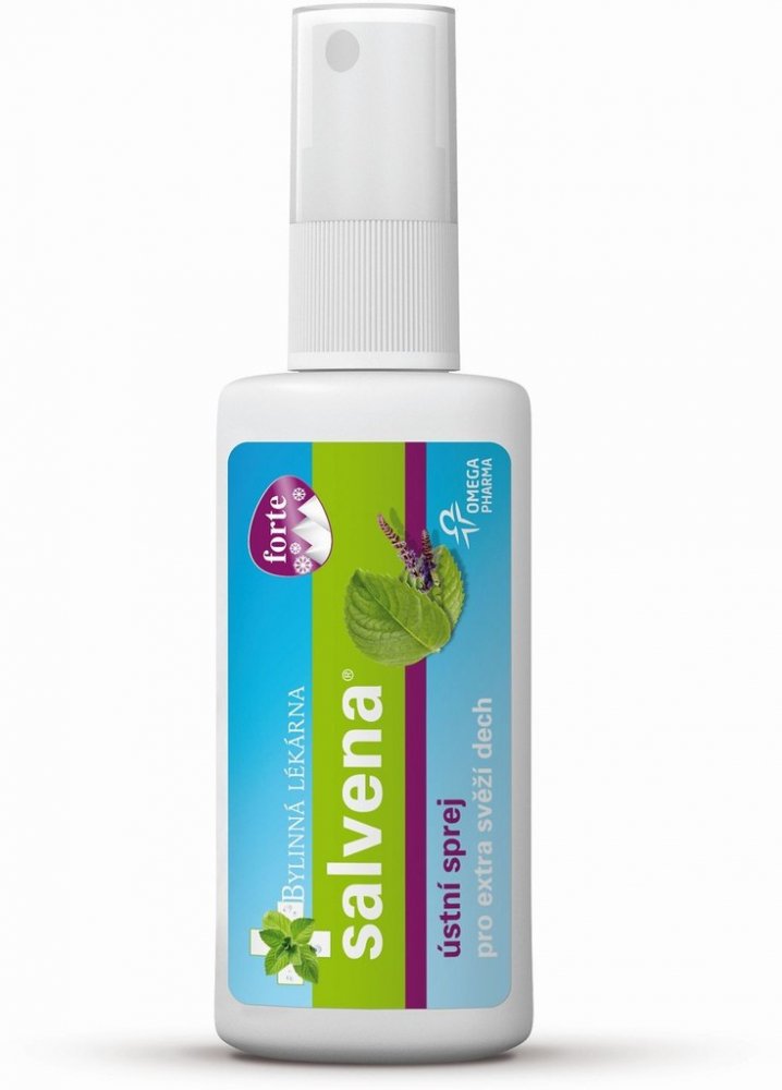 Bylinný ústní sprej Salvena forte díky obsahu extraktu Šalvěje lékařské pomáhá při zánětech dásní. Posiluju, regeneruje dásně a sliznici dutiny ústní. Spolu s extraktem ze zeleného čaje, mentholu a máty peprné potlačuje nepříjemný zápach z úst.