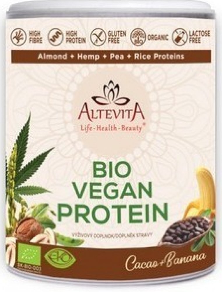 Altevita 300 g konopné práškové 4.8 g 15.0 g 20 ks 58.0 kcal mandlový protein, rýžový nápoj, kakaový prášek