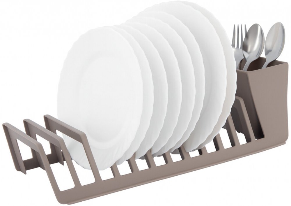 ✔ Rozměry: 11,5 × 37,5 × 10,5 cm ✔ Materiál: odolný plast ✔ Barva: taupe, béžová ✔ Kapacita: až 12 talířů + přihrádka na příbory ✔ Údržba: otírat vlhkým hadříkem nebo opláchnout vodou