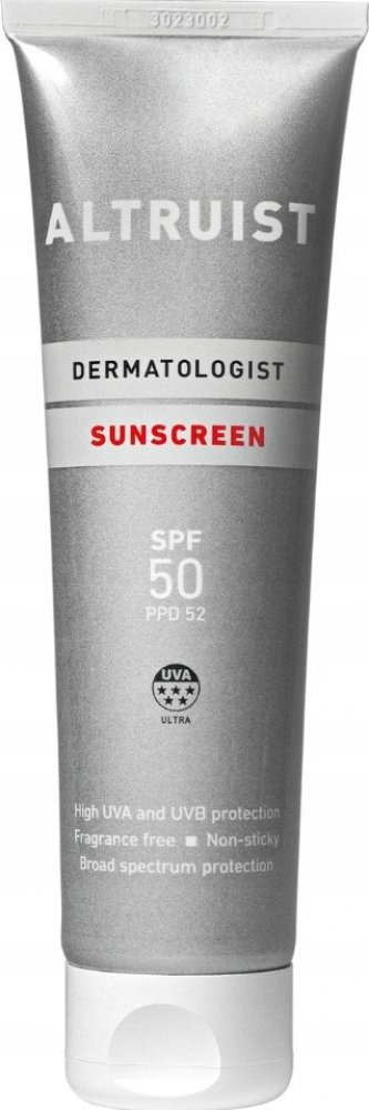 Krém na opalování Altruist Suncreen SPF 50 / PPD 52 (100 ml) s vysokou SPF a zejména PPD ochranou proti UVB a UVA záření. Vhodný na tělo i na obličej, je voděodolný a ideální na sport. Vhodný i pro citlivou pokožku dětí od 2 let.