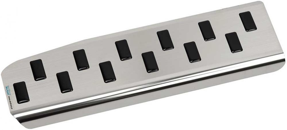 Opěrka je vyrobena z kvalitní nerezové oceli (žádný laciný hliník ale poctivý kov), na její vnější straně jsou nalisovány příčné protiskluzové výstupky z gumo-plastu.
