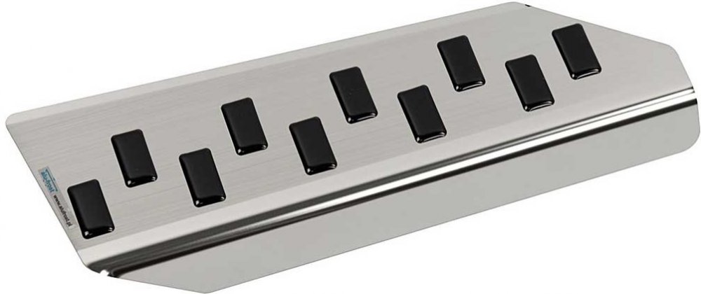Opěrka je vyrobena z kvalitní nerezové oceli (žádný laciný hliník ale poctivý kov), na její vnější straně jsou nalisovány příčné protiskluzové výstupky z gumo-plastu.
