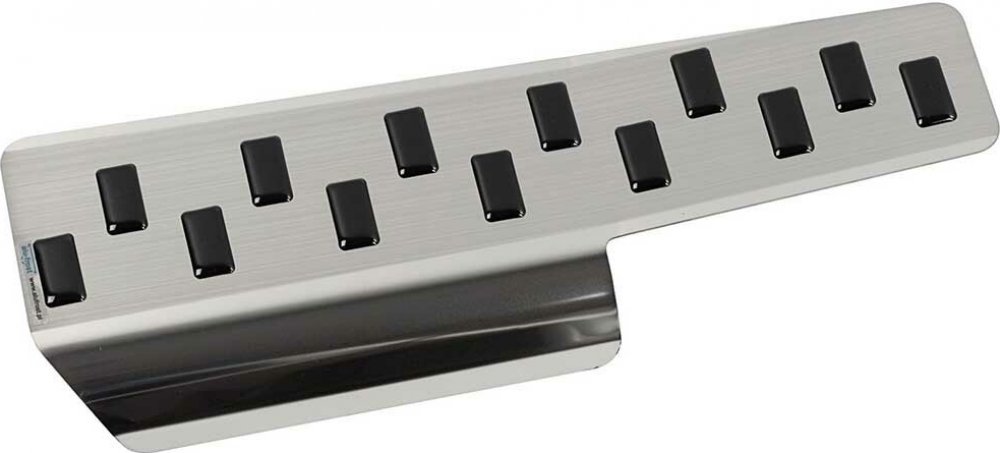 Opěrka je vyrobena z kvalitní nerezové oceli (žádný laciný hliník ale poctivý kov), na její vnější straně jsou nalisovány příčné protiskluzové výstupky z gumo-plastu.