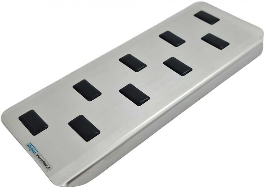 Opěrka je vyrobena z kvalitní nerezové oceli (žádný laciný hliník ale poctivý kov), na její vnější straně jsou nalisovány příčné protiskluzové výstupky z gumo-plastu.