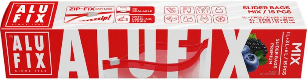 Sáčky se zipem sada 15 ks (mix 1 l + 3 l + 6 l) ALUFIX.