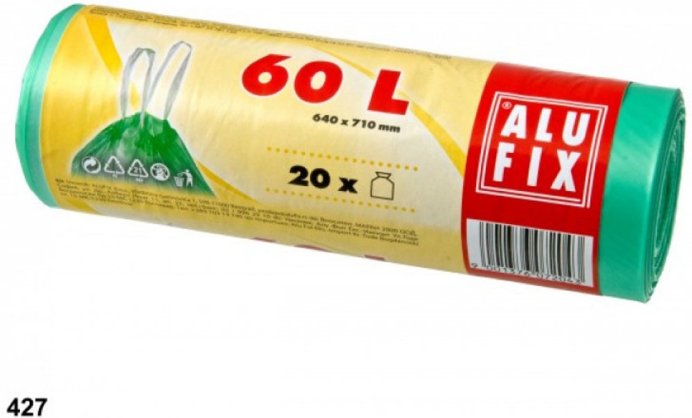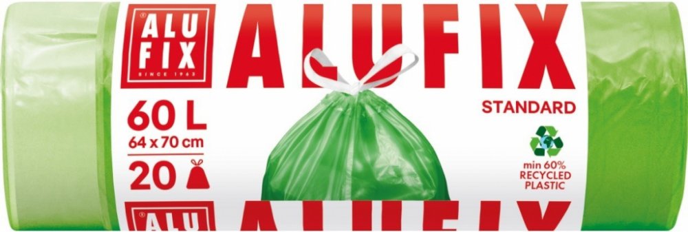 Kvalitní Alufix pytle na odpadky zatahovací 60l, 64x71cm, síla 15µ, HDPE zelené, 20 ks v balení z kategorie Dům a zahrada | Domácnost | Doplňky do kuchyně | Skladování a balení potravin | Potravinářské fólie za cenu 69 Kč na Dokose.cz