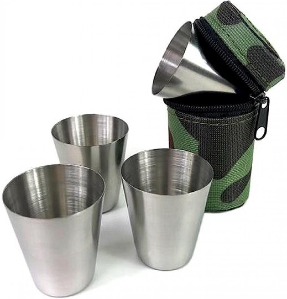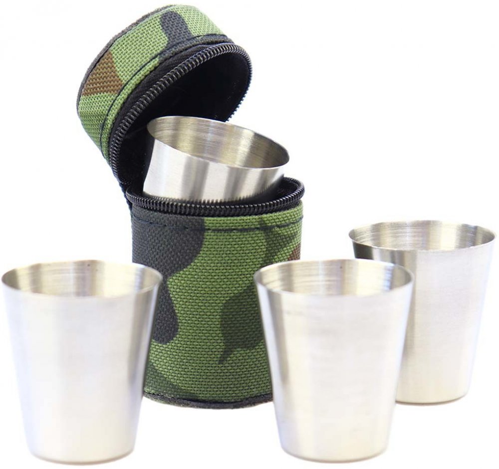 Cestovní nerezové panáky v maskáčovém pouzdře