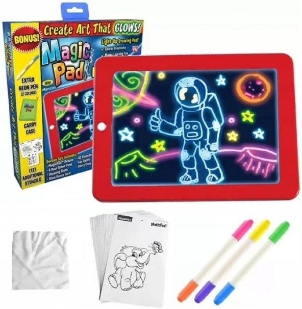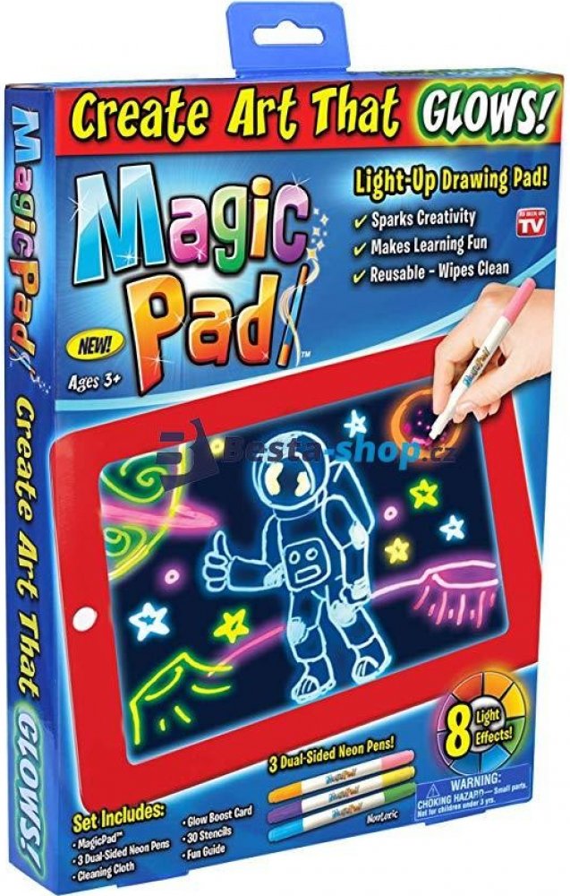 Magická tabule na kreslení, svítící LED deska 25,5 × 19 cm Magic Pad. Chystáte se na delší výlet a už teď se obáváte cesty? I Vaše děti cestování určitě nudí. Máme pro ně skvělou svítící LED desku! Cesta do školy, na výlet či čekání u doktora nikdy nebyly zábavnější. S kouzelnou tabulkou zaměstnáte prcky na celé hodiny.