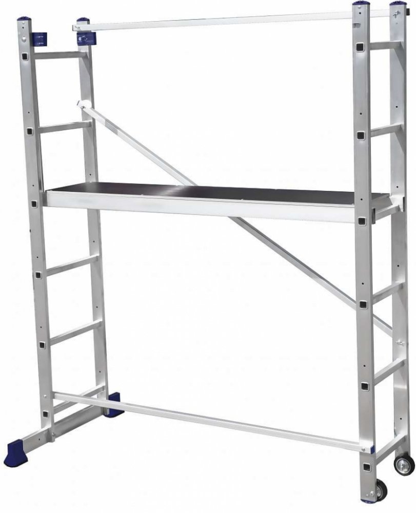 Ideálně se hodí na drobné opravy a montážní práce v rozumných výškách. Jednotku snadno smontujete bez použití nářadí. Pracovní podlaha lešení s povrchovou úpravou - protiskluz, vodovzdorná, možnost použití i na schodech, pojízdné, kolečka součástí lešení.