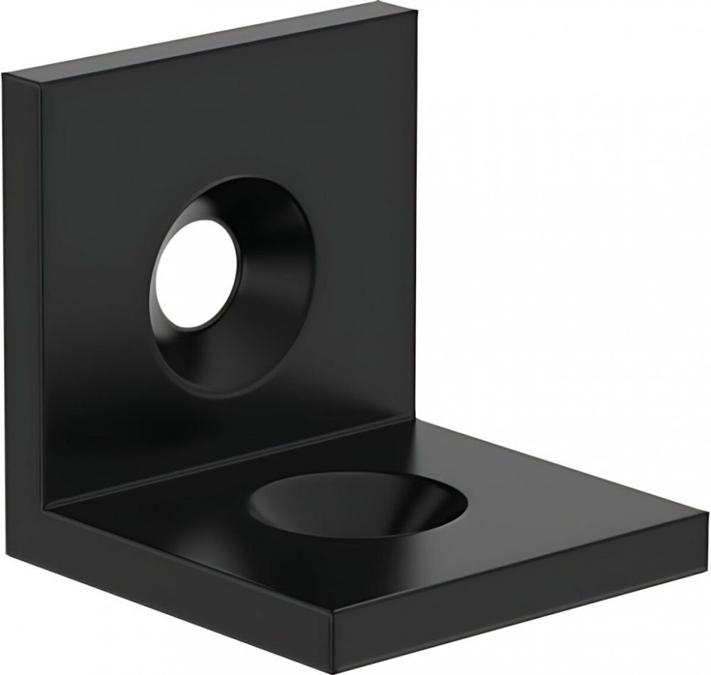 Malý úhelník s úhlem 90° a rozměry 40x40 pro spojování profilů z vnější strany pomocí šroubů se závitem M8 se zapuštěnou hlavou.