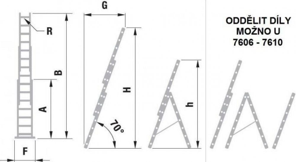 Výška jednoho dílu (složeného žebříku) : 315cm
