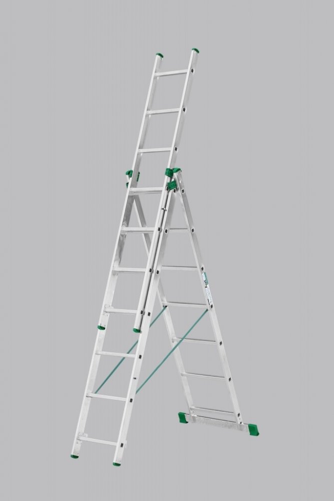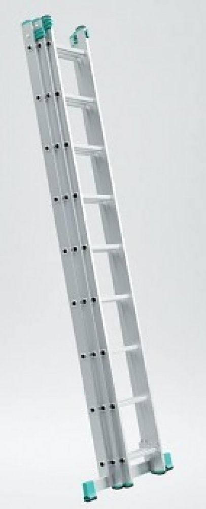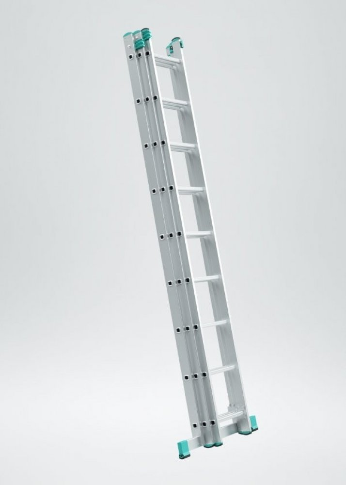 Tento hliníkový žebřík má 3 části, každá s 7 lisovanými, drážkovanými stupni o rozměru 28x28mm. Podélné části hliníkového žebříku HIGHER jsou vyrobeny z profilovaného hliníku o rozměru 55x20mm. Kluzké a bezpečné roztažení žebříku je zajištěno silnými hliníkovými vodicími lištami. Díky kompaktním rozměrům (délka pro přepravu je 2,01 m) a nízké hmotnosti 10,50 kg je tento hliníkový žebřík pohodlný pro použití a snadný na přepravu.