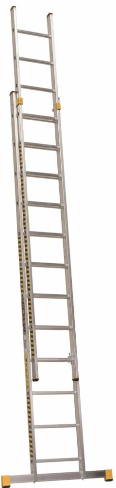 Dvoudílný výsuvný Al žebřík Forte Výrobek českého výrobce Alve. Řada Forte v dokonalém žluto-černém designu splňuje ta nejnáročnější kritéria profesionálů. Pro použití na stavbách, ve firmách, ale i na zahradách a pro běžné domácí použití. Neobejdete se bez něj při česání ovoce, opravách domu, čištění okapů či při běžné výměně žárovky. - lehké - odolné - praktické - levné - Technické parametry: Povolené zatížení je max. 150 kg a na všechny výrobky Alve Eurostyl i Forte počet příček 2x8 až 2x20 max. výsuvná délka 3,83 až 10,62 m šířka 412 mm Obě řady hliníkových žebříků EUROSTYL i FORTE prošly náročnými zkušebními testy a získaly certifikáty u nás i v zahraničí. Dokumenty ke stažení: Návod k žebříkům ALVE Certifikát k Dvoudílný výsuvný Al žebřík FORTE
