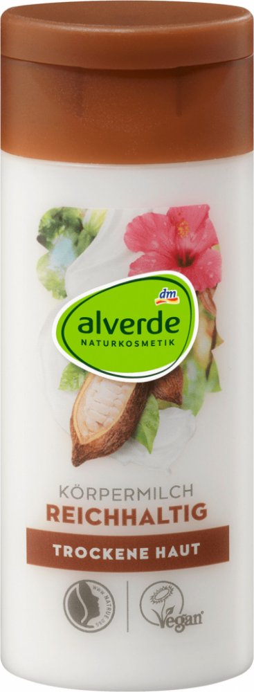 alverde tělové mléko bio kakao & bio ibišek a pečující složení je vhodné pro suchou pokožku. Složení s bio kakaovým máslem a výtažkem z bio ibišku dodává pokožce dlouhodobou hydrataci až po dobu 24 hodin. Rostlinný glycerin a slunečnicový olej pokožku vyživuje, chrání ji a zmírňuje pocit napětí. Příjemná vůně zahalí vaši mysl.## Neobsahuje syntetické vonné, barvicí a konzervační látky. Suroviny z ...