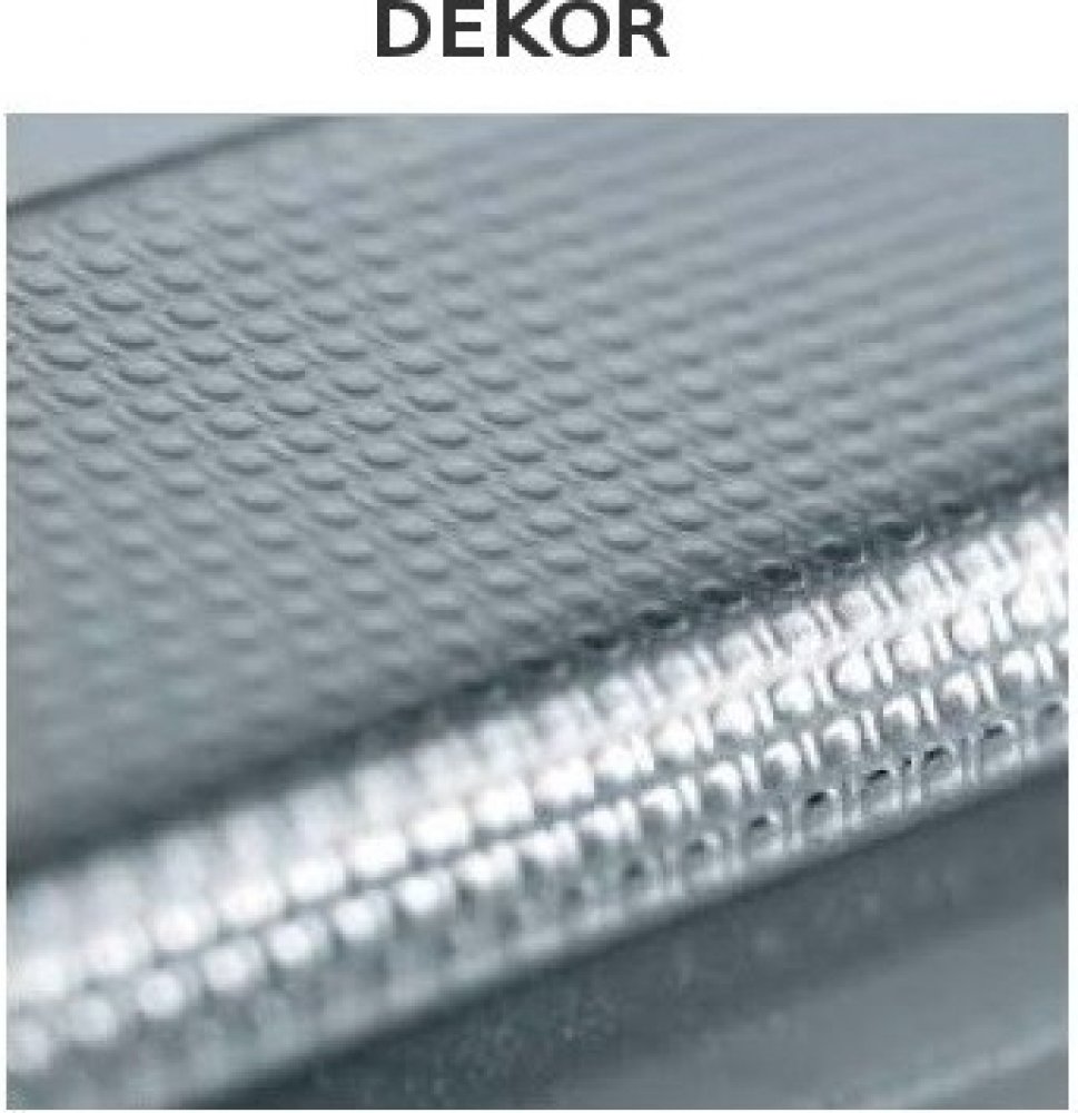 Struktura povrchu: Dekor (DEK) tkaná struktura nerezová ocel CrNi 18/10 je odolná vůči korozi (matová struktura, která je méně choulostivá na malé poškrábání).