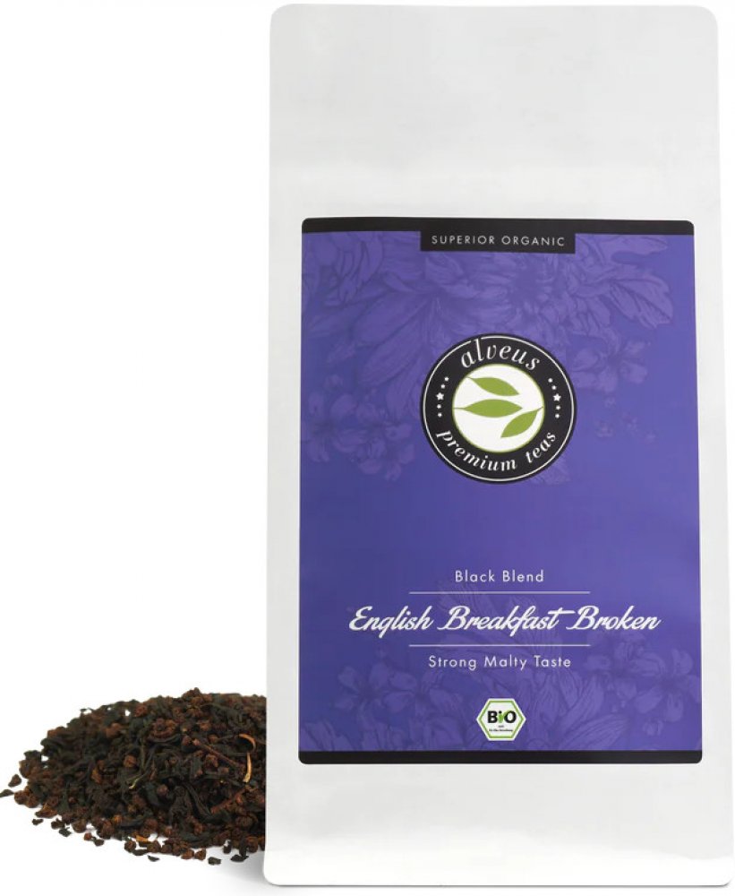 Alveus Bio English Breakfast je prémiová směs černého čaje broken v certifikované bio kvalitě. Klasika mezi černými čaji, která si získala oblibu po celém světě, nejen jako ranní povzbuzení. Sestává ze 2 typů bio černého čaje z proslulé indické provincie Assam. Jeden typ jsou drobné srolované čajové lístky a druhý typ jsou najemno nařezané lístky čaje. Díky této typické kombinaci má čaj výraznou, intenzivní chuť a zlatohnědou až tmavě hnědou barvu nálevu, která je charakteristická pro kvalitní assamský čaj.