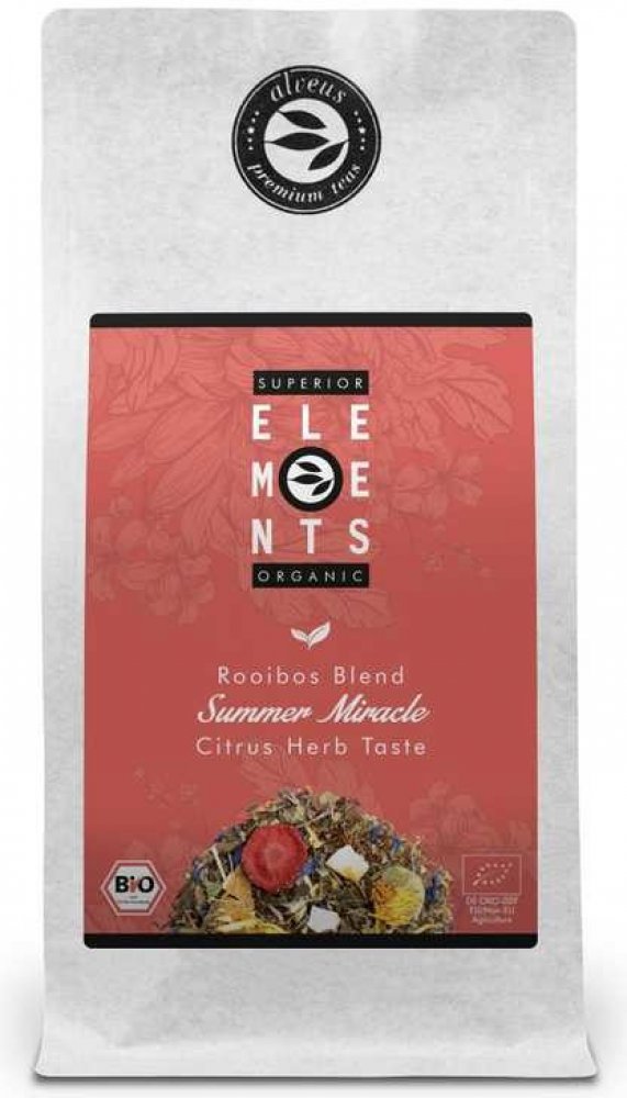 Alveus Bio Summer Miracle je prémiová sypaná směs rooibosu a vybraných bylin v certifikované Bio kvalitě, která neobsahuje kofein. Tato směs je navržena pro maximální osvěžení a lehkost pro teplé letní dny, ale je skvělá k pití během celého roku. Název "Zázrak léta" dokonale odráží její svěží chuť a povznášející aroma.