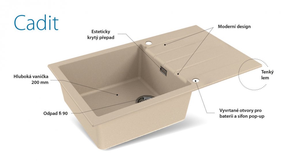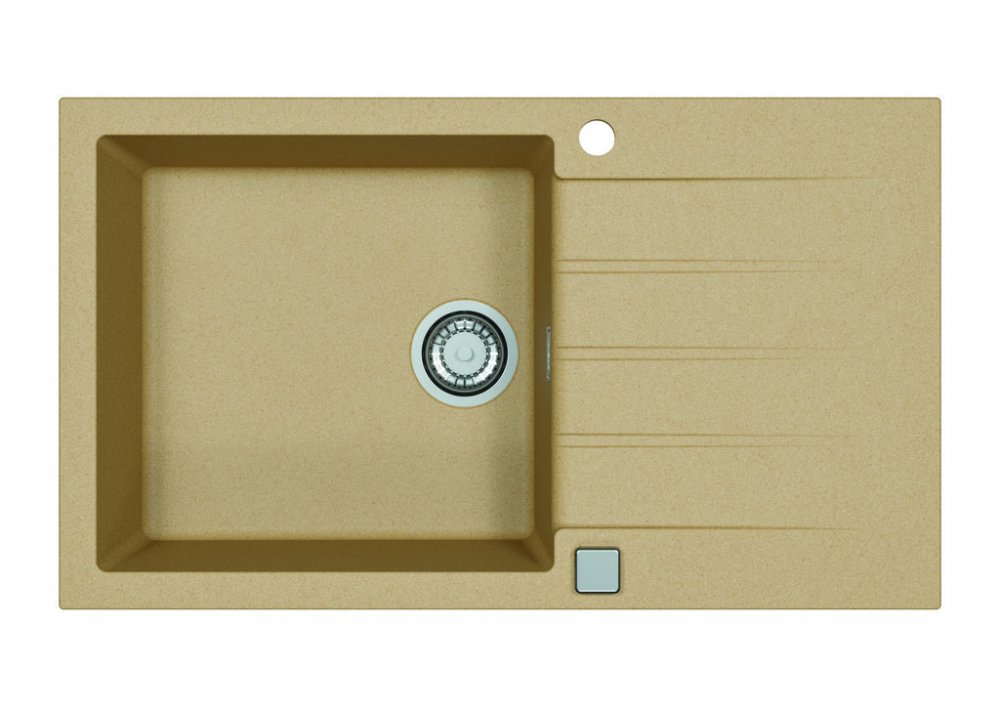 Granitový dřez s odkapávací plochou a velkou, prostornou vaničkou Alveus Cadit 40 v barevné variantě Béžová je vyroben z vysoce jakostního přírodního granitu, který obsahuje 80% drceného kameniva s příměsí barviv a pojiv. Díky tomu odolává teplotám až 280 C a je velmi odolný proti vrypu a mechanickému poškrábání.